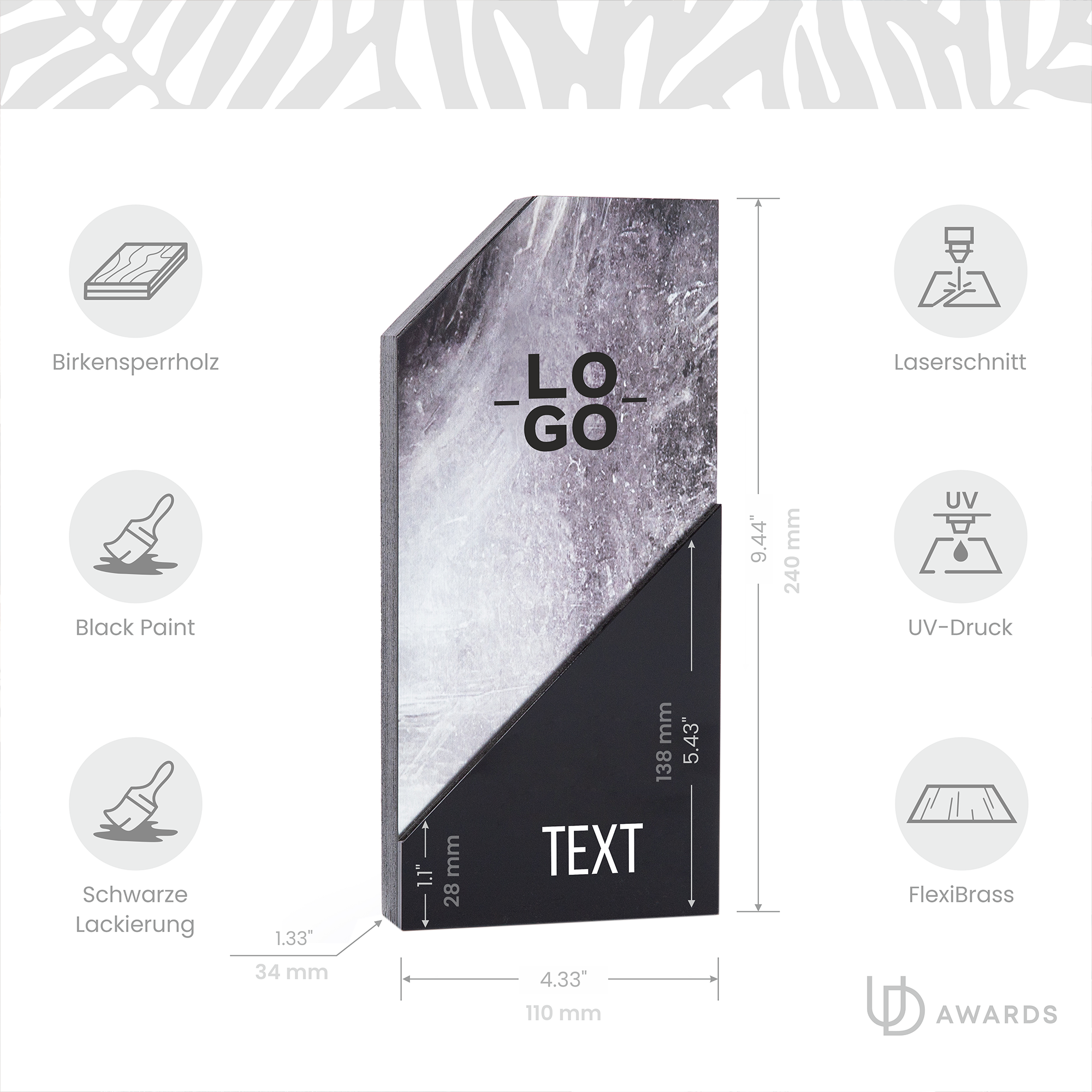 Eine mutige, moderne Auszeichnung, die schlichte Eleganz und starke Kontraste verbindet – ideal für Führung, Innovation und die Anerkennung von Meilensteinen.