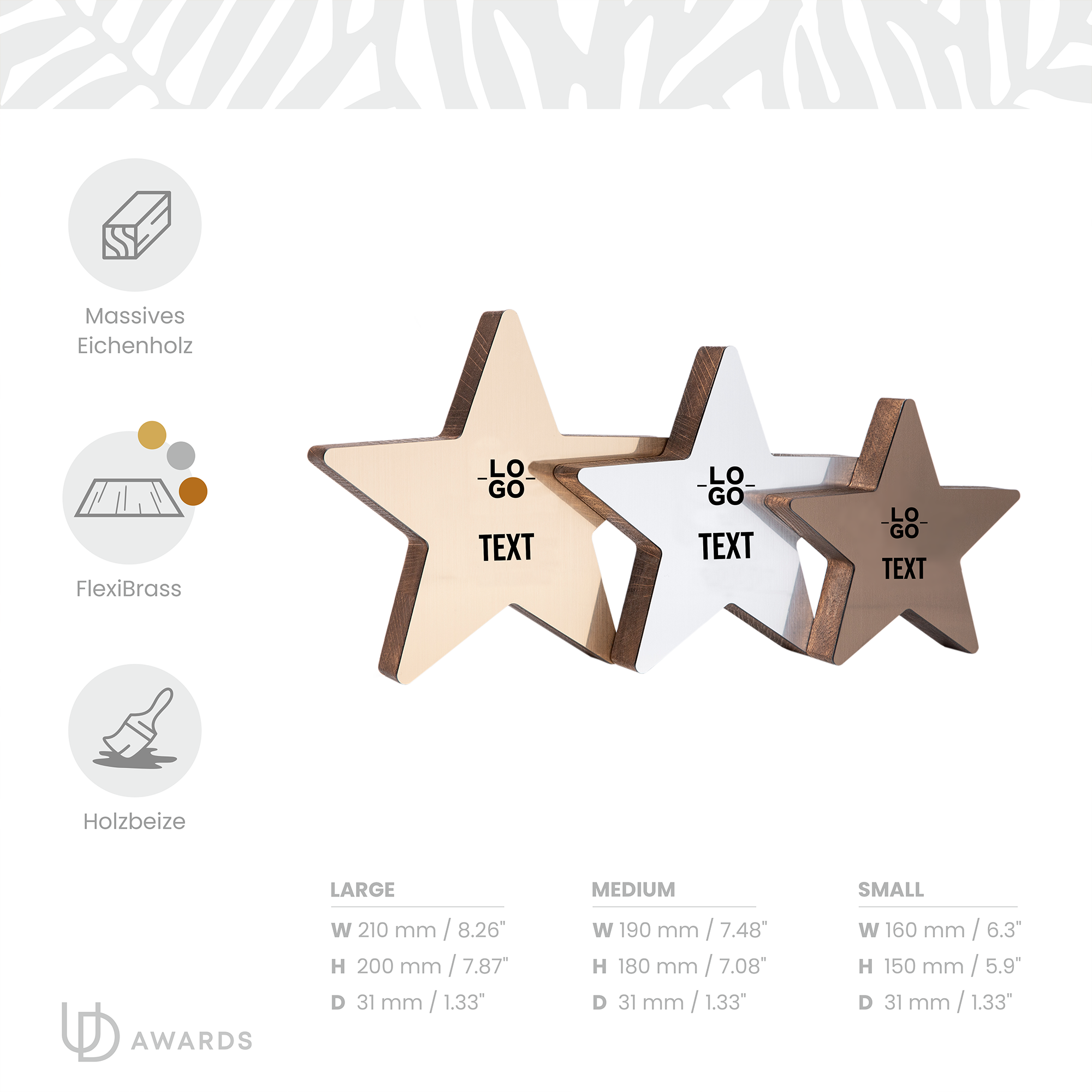 • Drei Größen für verschiedene Anerkennungsstufen