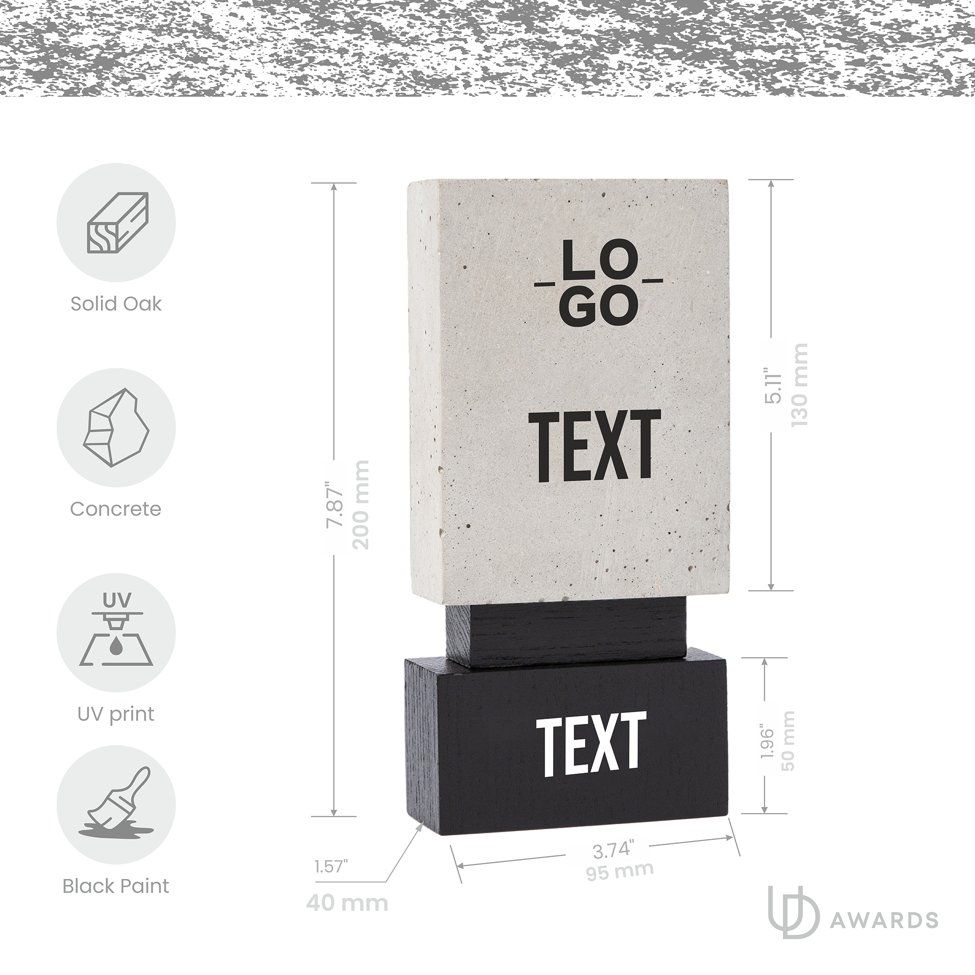 A bold statement piece that celebrates achievement with style. The trophy combines raw, natural materials with a clean geometric form, creating a modern and timeless award.