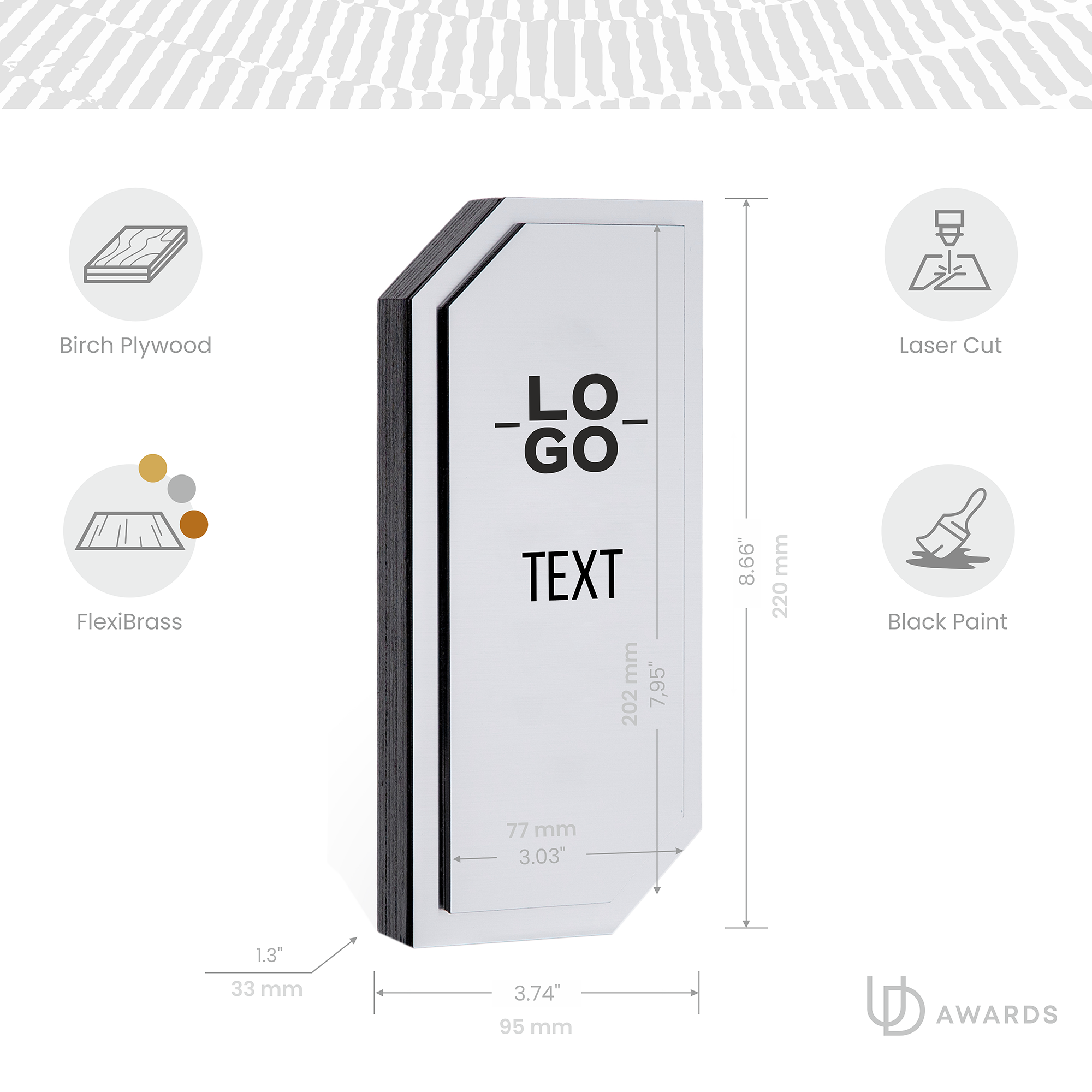 - FlexiBrass metal plate (available in gold, silver, bronze)